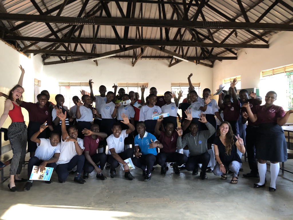 Upon arriving back at the office, we were alerted that we were expected to be attending a school outreach that afternoon with some peer educators who were facilitating sessions there. This was really short notice for all of us, but we happily piled back into the RAHU van and headed out to the two schools. Erin and Lily were assigned to a high school in rural Kampala and their session focused on peer influence/peer pressure. Rashmi and Desire went to a middle school nearby and focused on menstruation and personal hygiene. Both sessions involved participation from the students, various activities and games, and a question and answer portion at the end. After their session, Lily and Erin were lucky enough to get a tour of the school grounds, and spent some time talking to the head teacher who had set up the peer education session for the school.